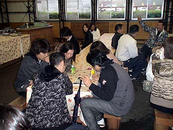 さすがに、外は寒いので建物の中で雑談。