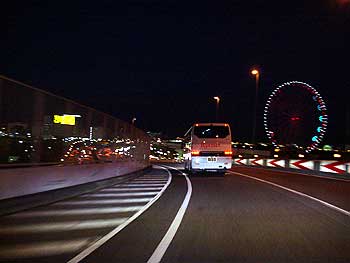 高速を走って、現地に向かいます。右側に見えるのは、葛西の観覧車です。わかってるって(^_^ゞ