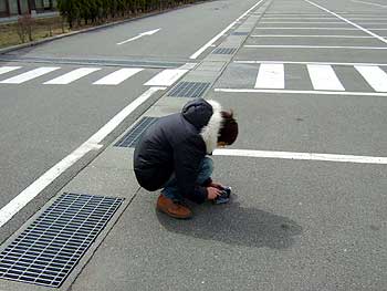 がんばって、ムービーカメラでローアングルから写真撮影。 |