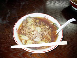 名前的には、微妙ですが味は最高です。しょうゆベースのスープに、そのまんま焼きそばです。